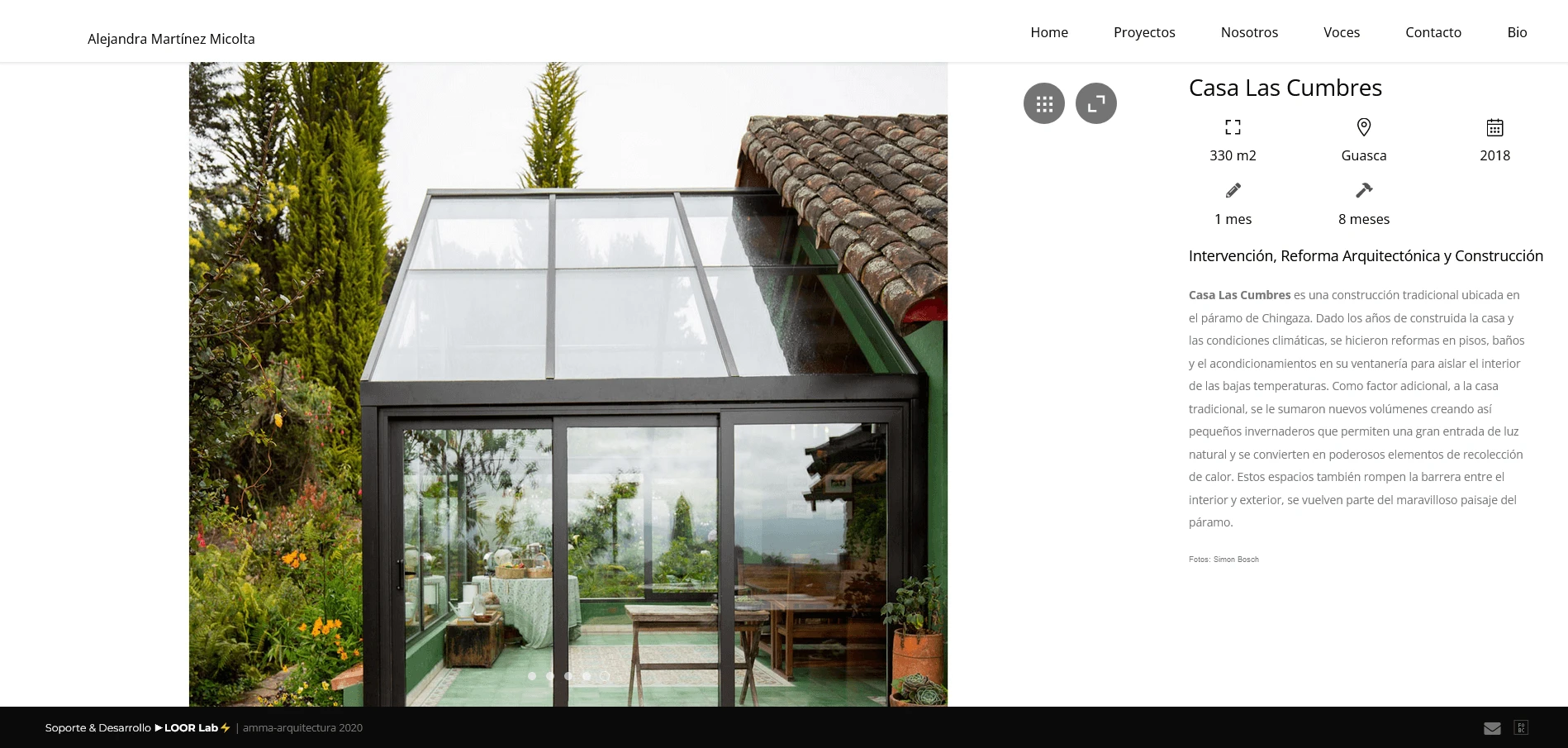 AMMA Arquitectura es el estudio de la arquitecta Alejandra Martínez Micolta que se dedica al diseño arquitectónico, diseño interior y construcción. Para este proyecto diseñamos y desarrollamos nuevos módulos para su Sitio Web realizando una migración de infraestructura IT e implementando su nuevo portafolio actualizado.
