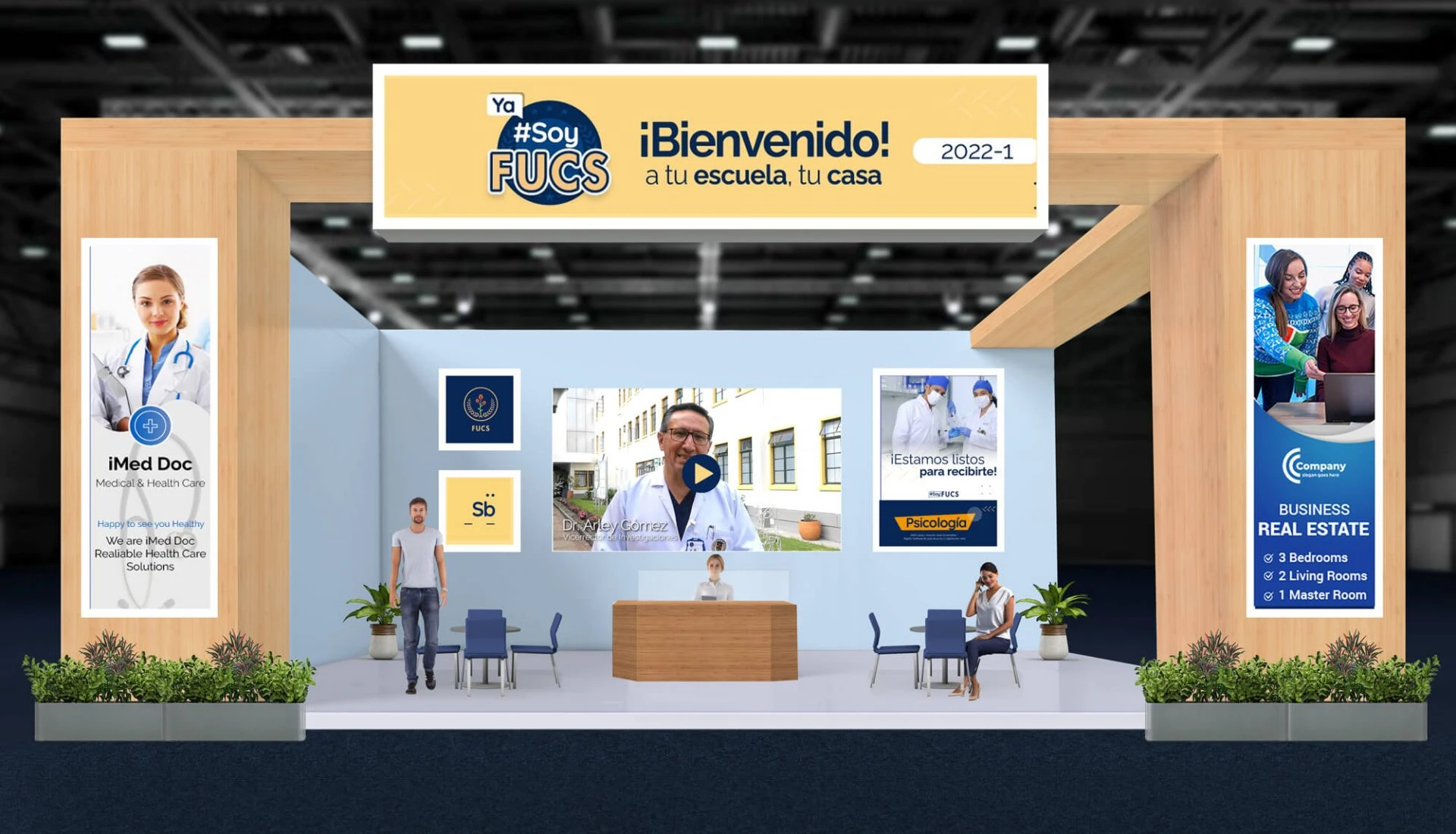 Diseño de Stands en 2D para los patrocinadores del evento, registro y creación de salas para Streaming del Evento Virtual.